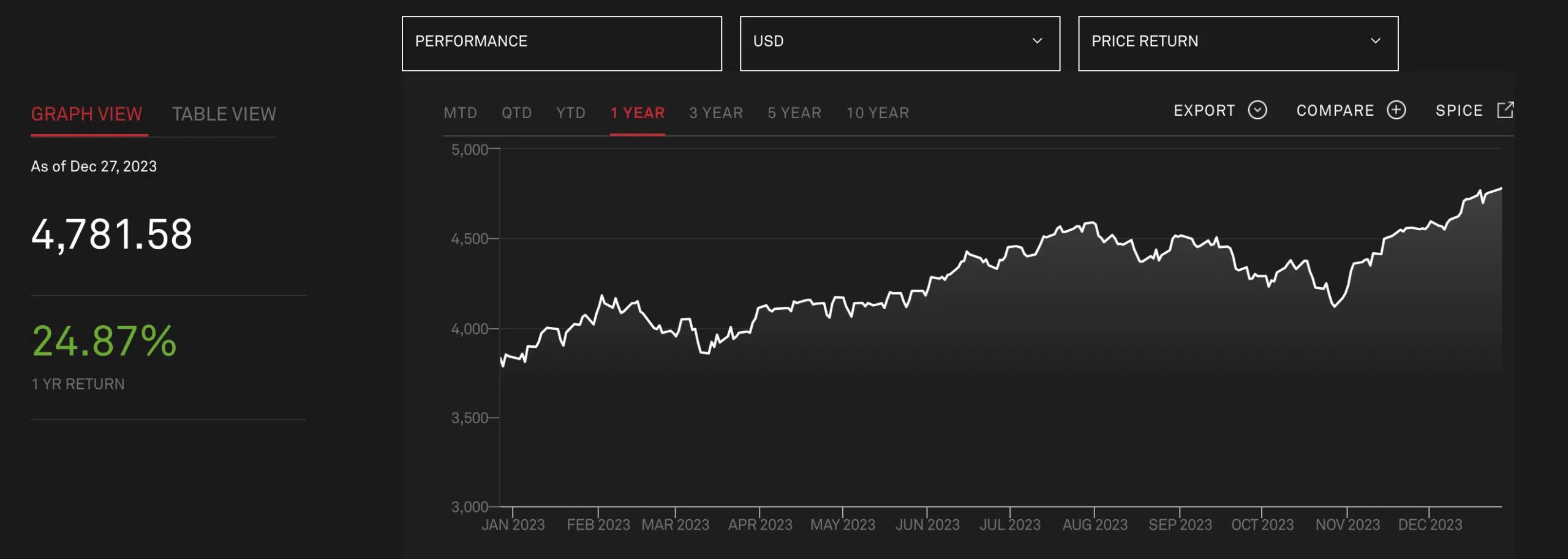 Secondo i dati ufficiali, lo S&P 500 ha registrato un aumento del 24,87% dall’inizio dell’anno (YTD).