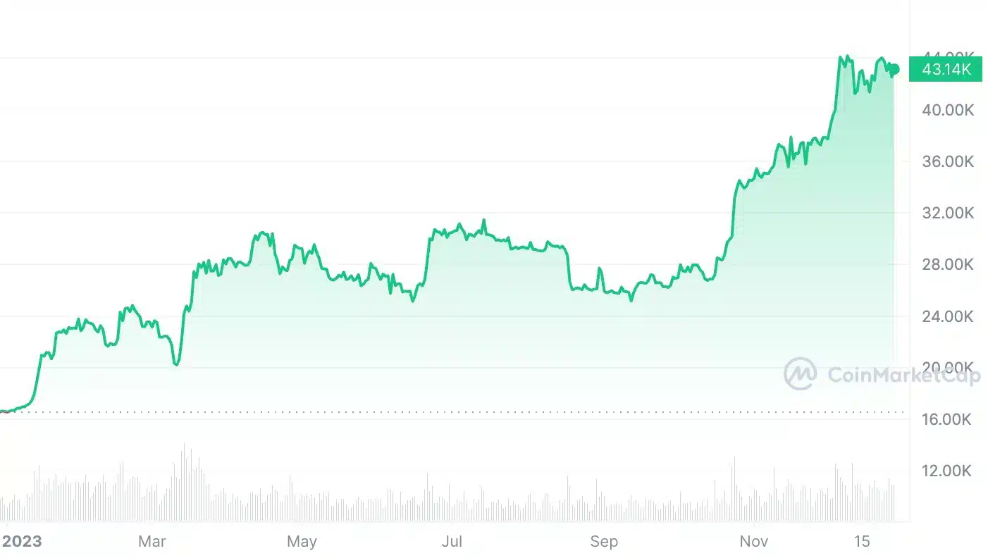 Spesso definito oro digitale, Bitcoin a fine anno ha raggiunto la quotazione di 43.000$ recuperando nettamente terreno rispetto al picco massimo registrato a novembre 2021, portando la differenza a circa il 36%.