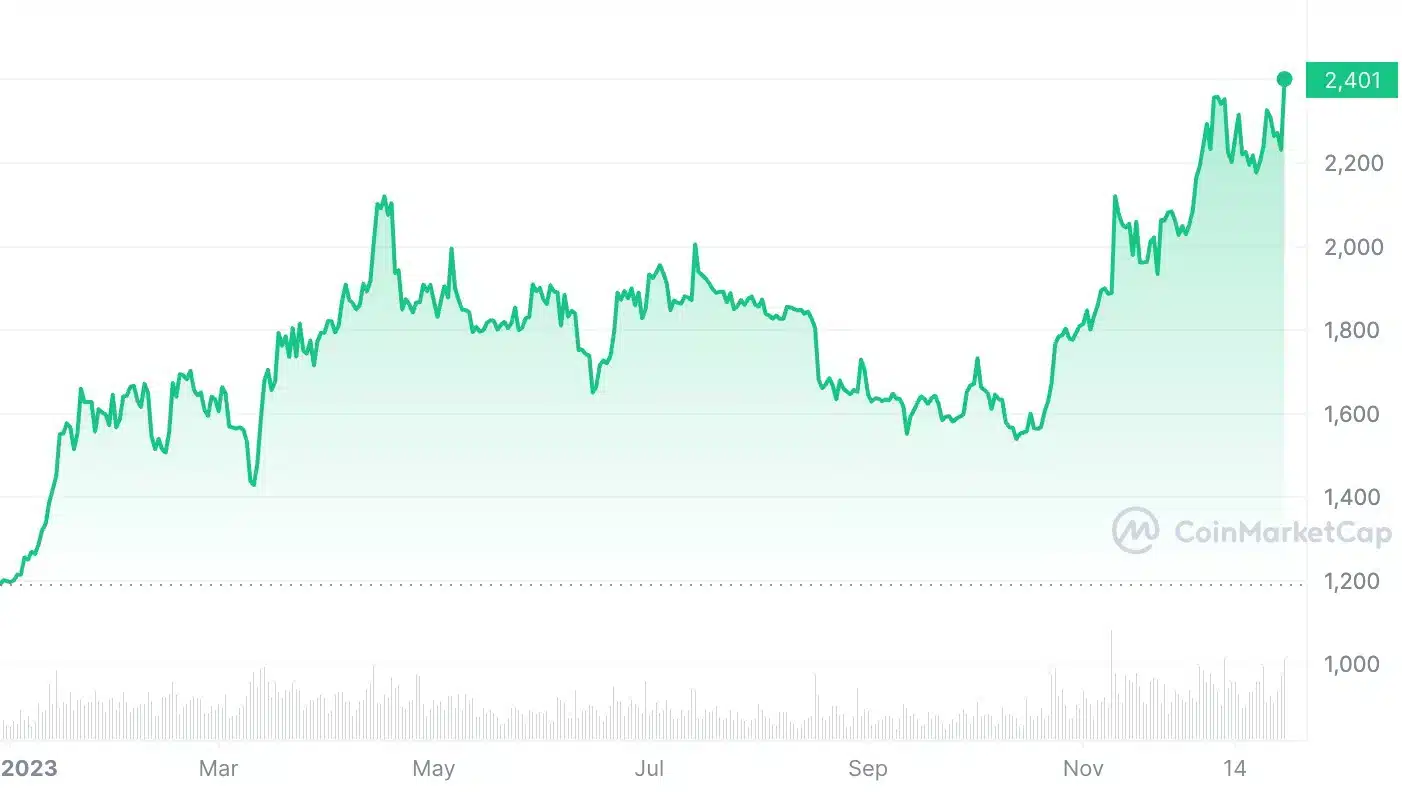 Adesso il valore del token orbita intorno a 2.400$ e non accenna a perdere il primato di blockchain di riferimento per la realizzazione di infrastrutture crypto e lo sviluppo di dApp.