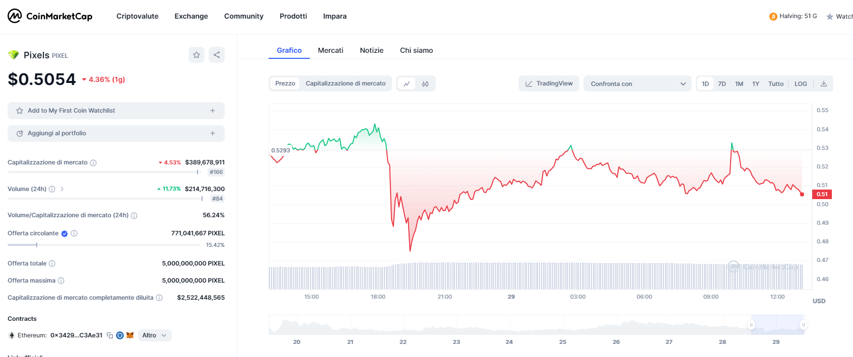 Discorso abbastanza simile per Pixels (PIXEL) che nella giornata di ieri è sceso pesantemente durante la corsa di BTC e si trova al momento in una fascia di prezzo molto interessante. Un’entrata a questo livello potrebbe essere molto interessante in altseason.