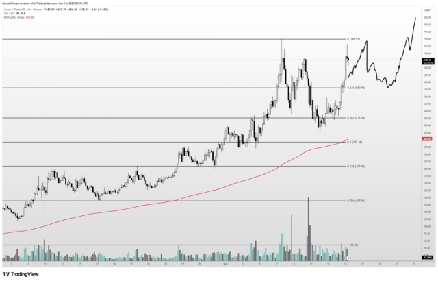 Zcash si è affermato come uno degli asset con le migliori performance nel mercato delle criptovalute questo mese, registrando un rally impressionante che ha riportato il prezzo sopra i $700 dopo settimane di crescita costante. Tuttavia, non tutti gli analisti ritengono che questa corsa debba essere seguita ciecamente.