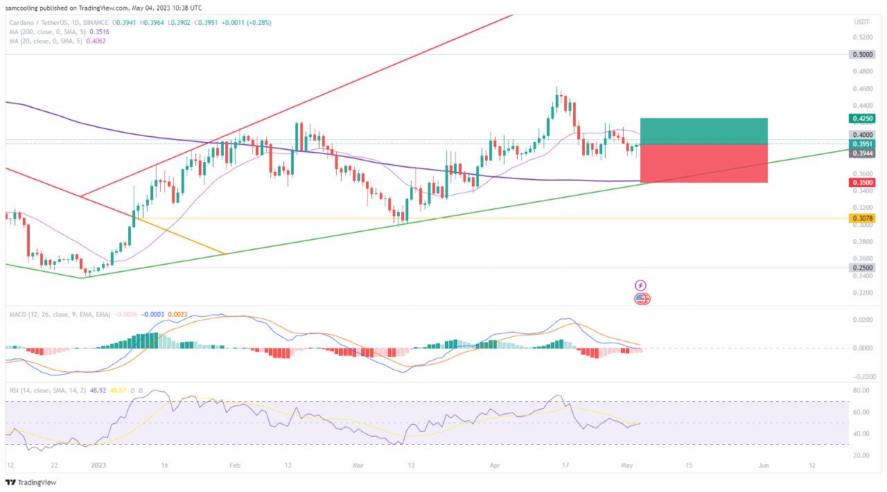 Tuttavia, un rifiuto in questo punto potrebbe far precipitare ADA verso un livello di supporto inferiore, intorno a 0,35 dollari (-11,3%).