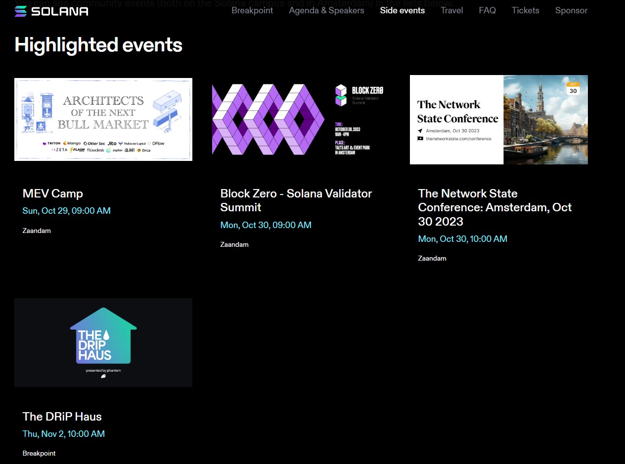 In concomitanza con Solana Breakpoint, Amsterdam ospiterà una serie di eventi paralleli dal 30 ottobre al 3 novembre, organizzati da diverse comunità web3 di Solana.