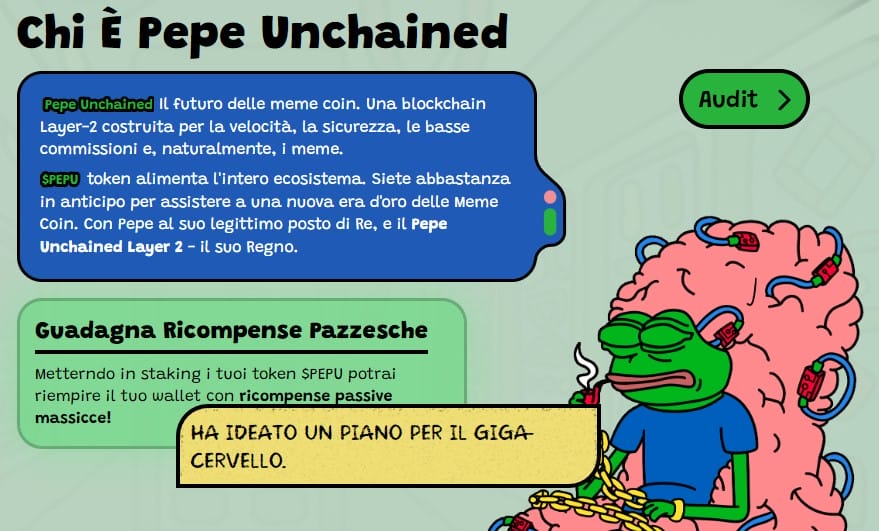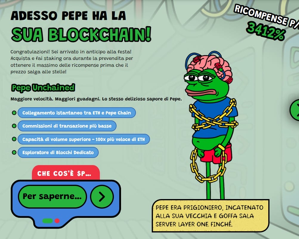 Se siete interessati a posizionarvi come early adopters nel progetto, assicurandovi il massimo guadagno al momento della quotazione del token sugli exchange, vi basta visitare il sito ufficiale di Pepe Unchained e collegare il vostro wallet, per acquistare i token con ETH, USDT, BNB o carta bancaria.
