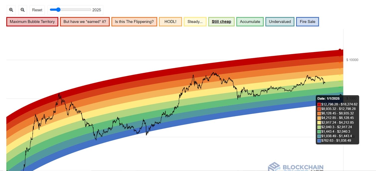 Ethereum Rainbow Chart prevede il prezzo di ETH per il 2025