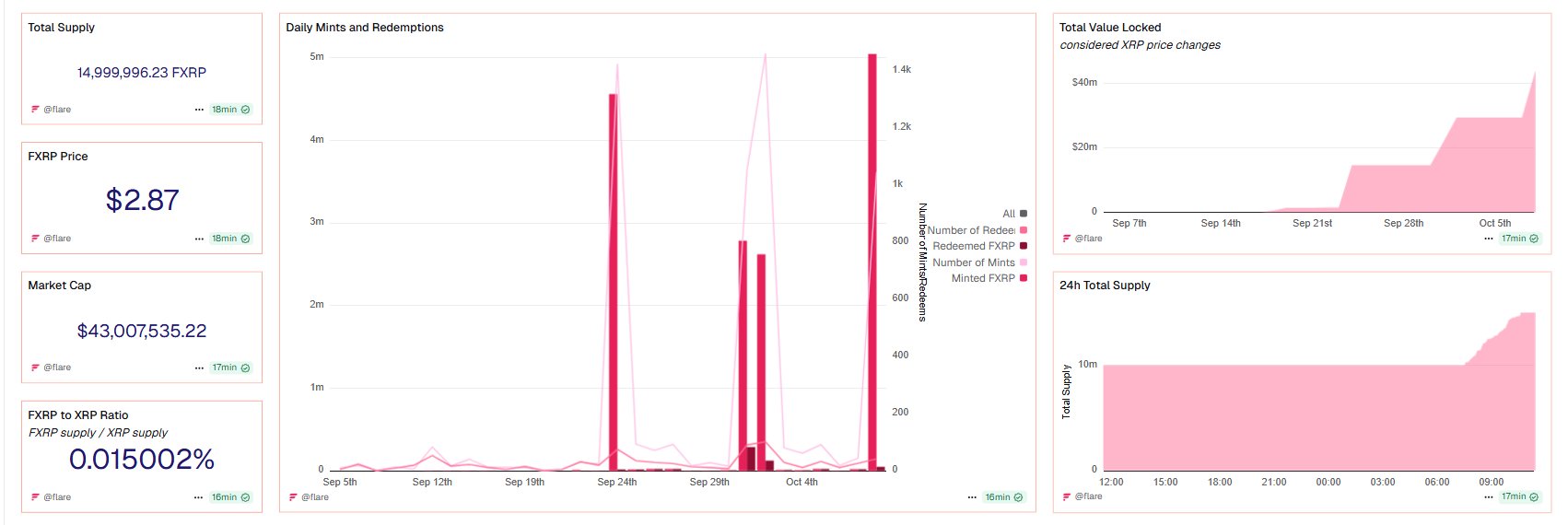 Inoltre, la rete ha riferito che attualmente sono in circolazione più di 15 milioni di token sulla sua rete, suggerendo che gli utenti che stanno sperimentando il modello FXRP lo stanno adottando con maggiore frequenza.