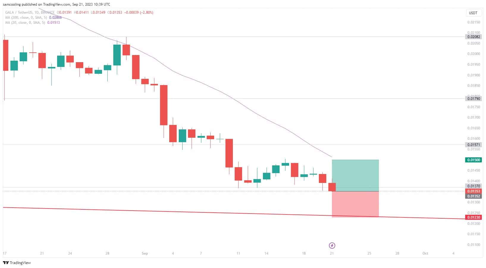 Solo lo scorso 13 settembre, il token aveva tentato un rimbalzo poi fallito del 10,8% dal supporto a 0,01375$. Ma tutti i guadagni si sono azzerati con il ritracciamento completo il 17 settembre.