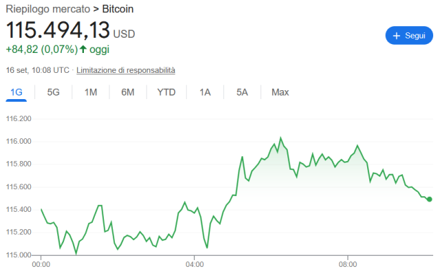 Bitcoin è stato scambiato intorno a 115.500 dollari, in rialzo del 3,4% nell’ultima settimana. Ethereum si è attestato vicino a 4.528 dollari, guadagnando il 5% nello stesso periodo. Entrambi sono stati sostenuti dall’ottimismo per una maggiore liquidità a basso costo, che potrebbe stimolare la domanda di asset più rischiosi.