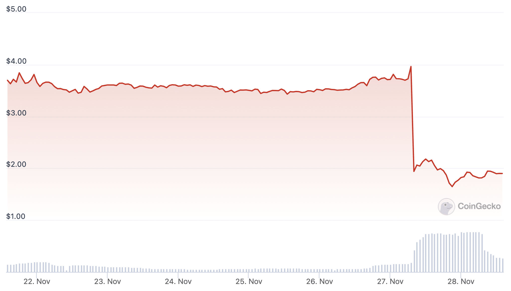 In seguito al massiccio crollo il token ha brevemente riguadagnato parte delle sue perdite prima di tornare ai minimi di circa 1,6 dollari, ovvero quasi il 60% al di sotto del prezzo pre-annuncio.