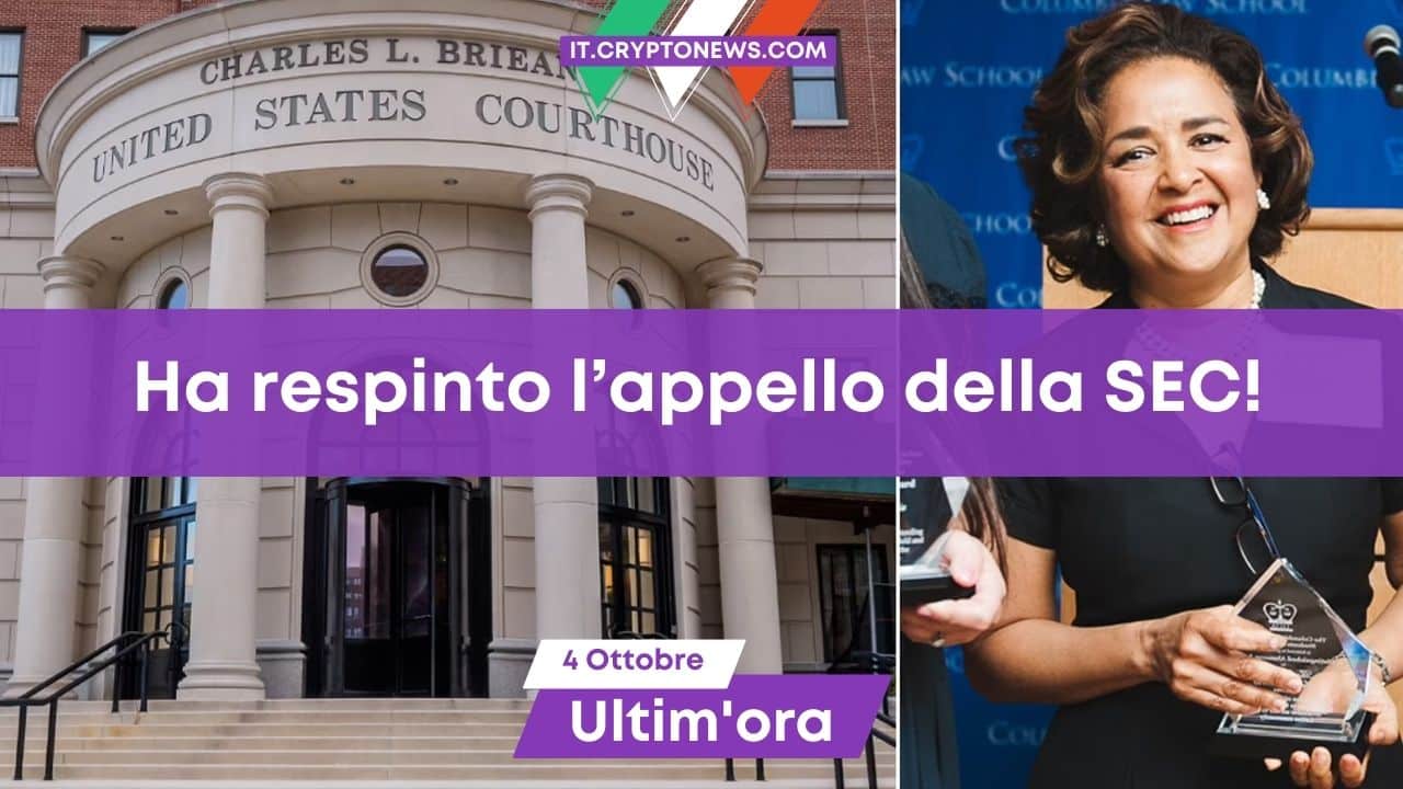 L’ordinanza del 3 ottobre è consultabile su courtlistener.com. La richiesta di sospensione da parte della SEC è stata respinta perché ritenuta priva di fondamento.