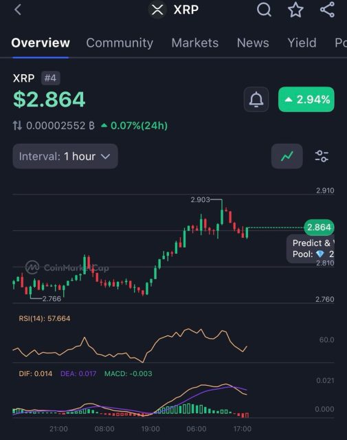 Sul fronte del mercato, XRP sta mostrando segnali concreti di potenziale rialzo. Gli indicatori tecnici suggeriscono che, qualora si verificasse un breakout chiaro al di sopra della soglia dei $2,90, l’asset potrebbe puntare alla fascia compresa tra $3,05 e $3,10, confermando la fiducia degli investitori e il rafforzamento del trend positivo. Il mantenimento dei livelli di supporto chiave sarà cruciale per sostenere questa dinamica, fungendo da ancoraggio per i guadagni recenti e da stimolo per ulteriori rialzi nel breve e medio termine.