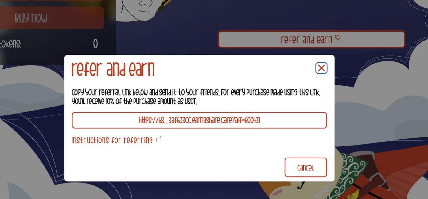 È sufficiente fare clic sul pulsante “Refer and earn” sulla homepage e collegare il proprio wallet per generare il link di riferimento. Tutti coloro che condividono i riferimenti riceveranno il 5% dell’importo contribuito dal referente.