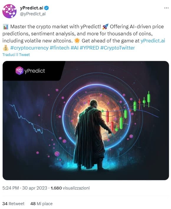 “yPredict sta costruendo una piattaforma all’avanguardia per la ricerca e il trading di criptovalute, che fornisce ai trader e agli investitori l’accesso a dozzine di funzionalità relative a segnali, breakout, riconoscimento di pattern e sentiment sociale e giornalistico”.