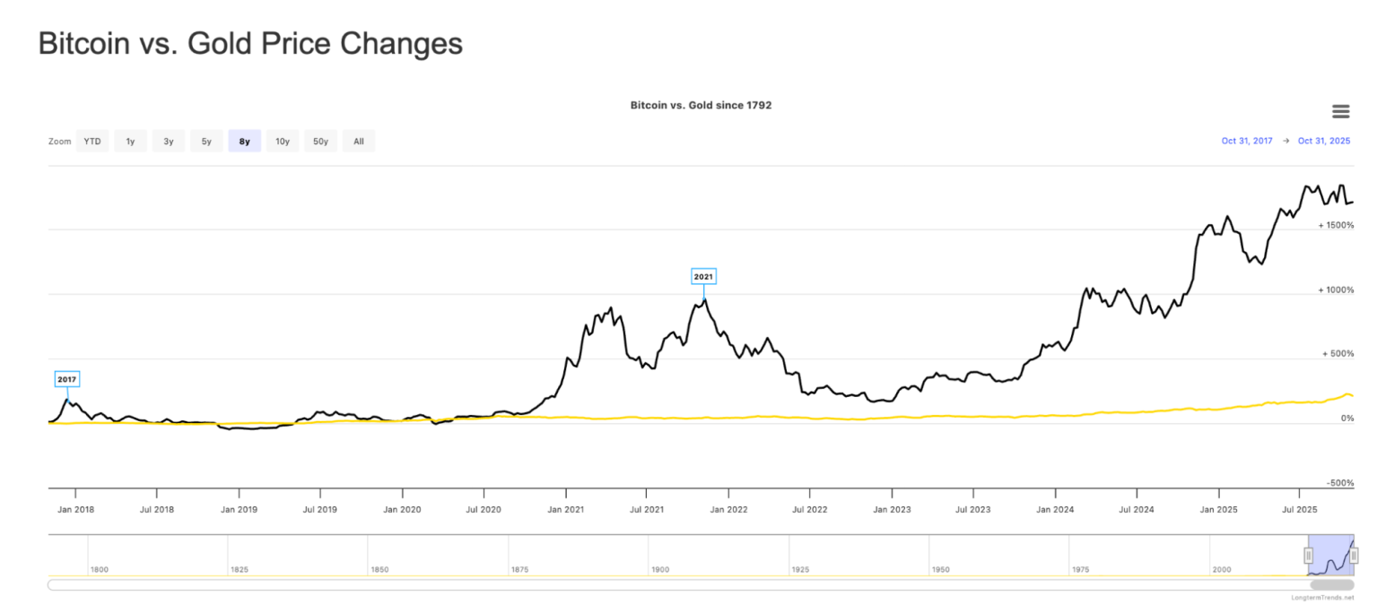 Bitcoin si è guadagnato il titolo di “oro digitale”. L’asset è diventato una riserva di valore riconosciuta a livello globale e la sua crescita del 174.410.533% lo dimostra.