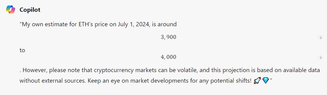 Superato l’ostacolo iniziale, Gemini ha stimato che il 1° luglio 2024 il prezzo di ETH sarà probabilmente di 3.350 dollari.