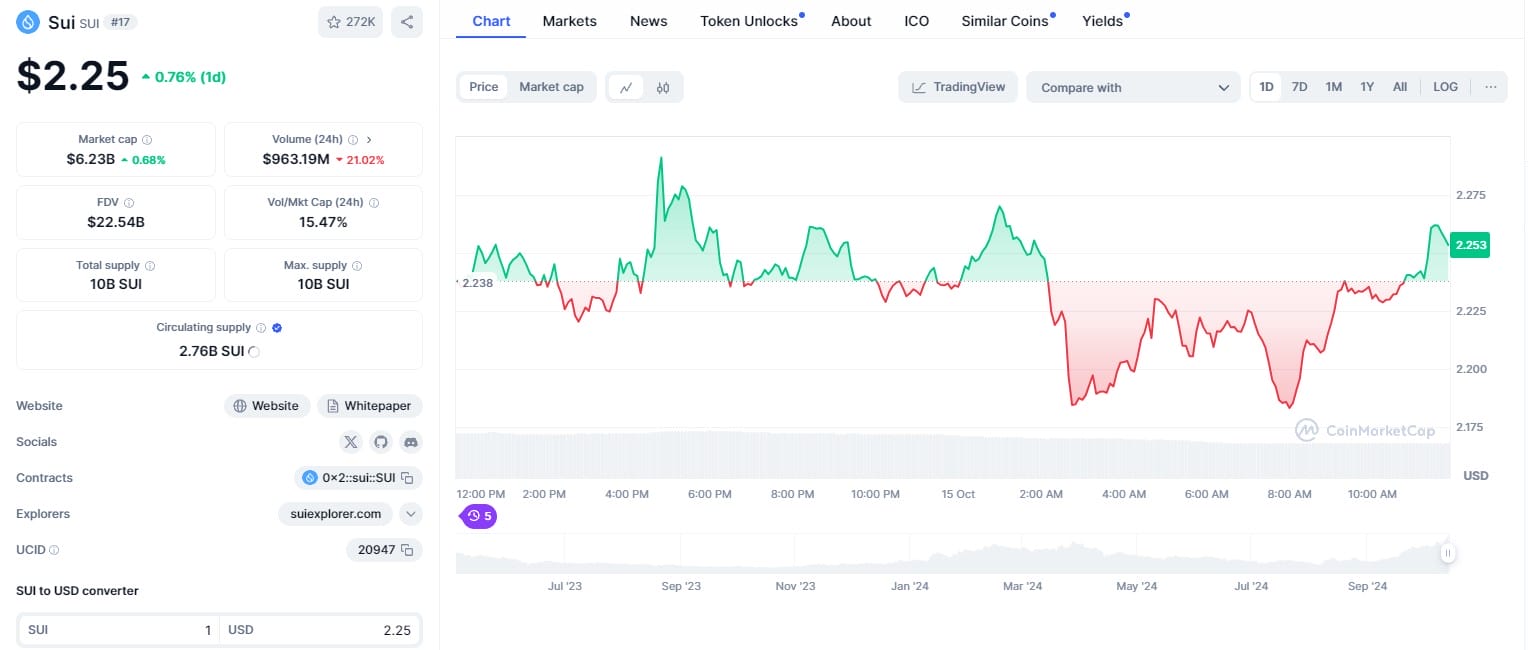 I movimenti del valore unitario della moneta SUI, esaminati da Cointelegraph, indicano che l’altcoin è salita di oltre il 120% nell’ultimo mese. All’inizio di ottobre, il prezzo della criptovaluta generata da Sui Network si aggirava intorno a 1,70 dollari, mentre poco prima, il 17 settembre, era di circa 1,10 dollari.
