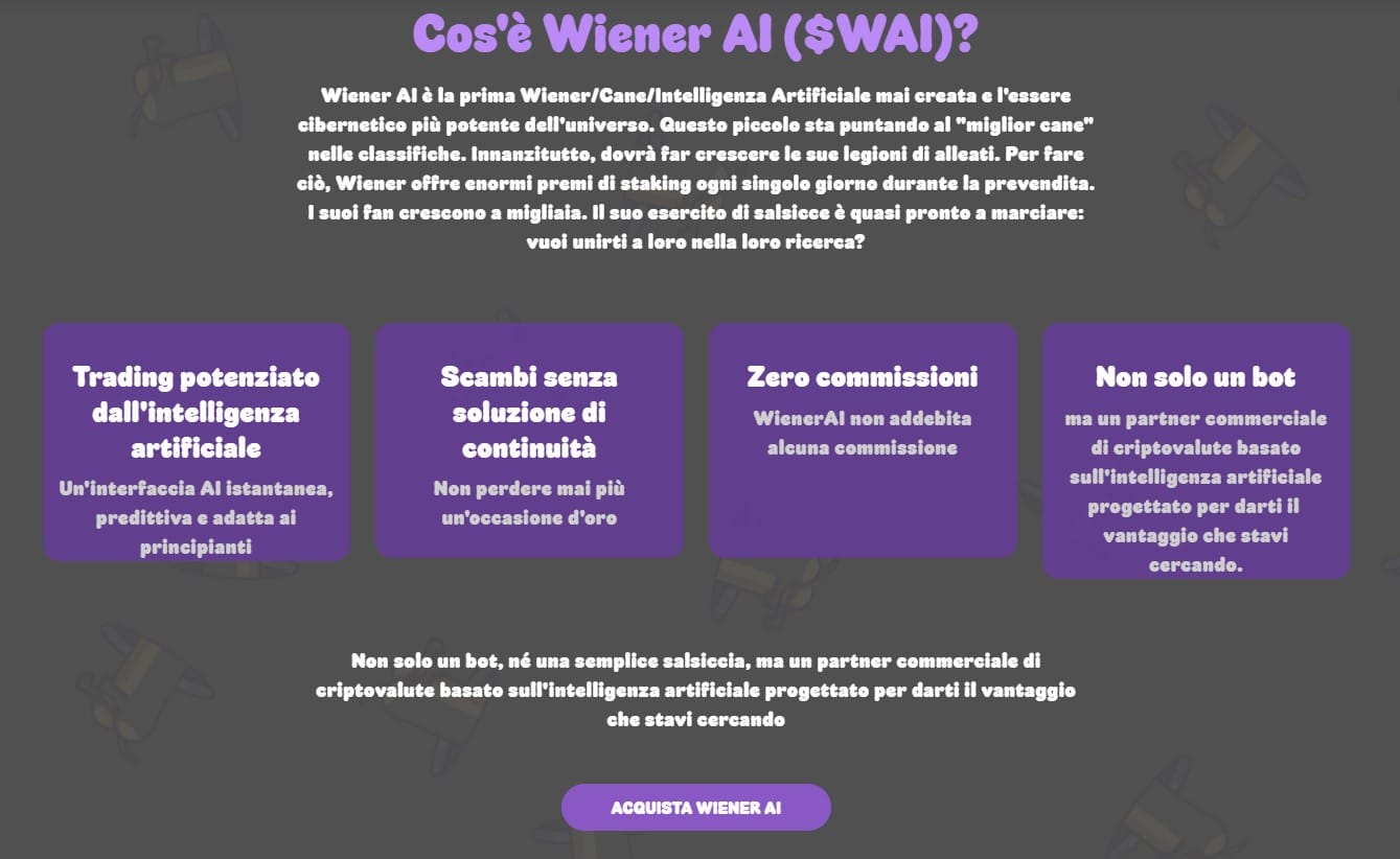 1. WienerAI (WAI): un progetto di AI memecoin che mira ad avere un impatto sul mondo del trading