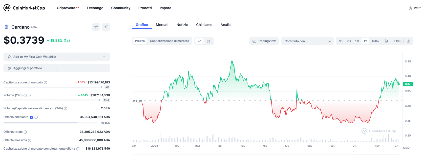 Per quanto riguarda invece la prima altcoin per capitalizzazione di mercato è bene considerarne i progressi su una prospettiva estesa. Dal suo lancio è diventata un punto di riferimento per molti operatori istituzionali. Il passaggio alla proof of stake ha destabilizzato in un primo tempo il suo status quo, ma presto è diventato un punto di riferimento per l’evoluzione ecosostenibile del settore. La sua parabola nel corso dell’anno è stata notevole, seppure meno entusiasmante rispetto a quella di Bitcoin.