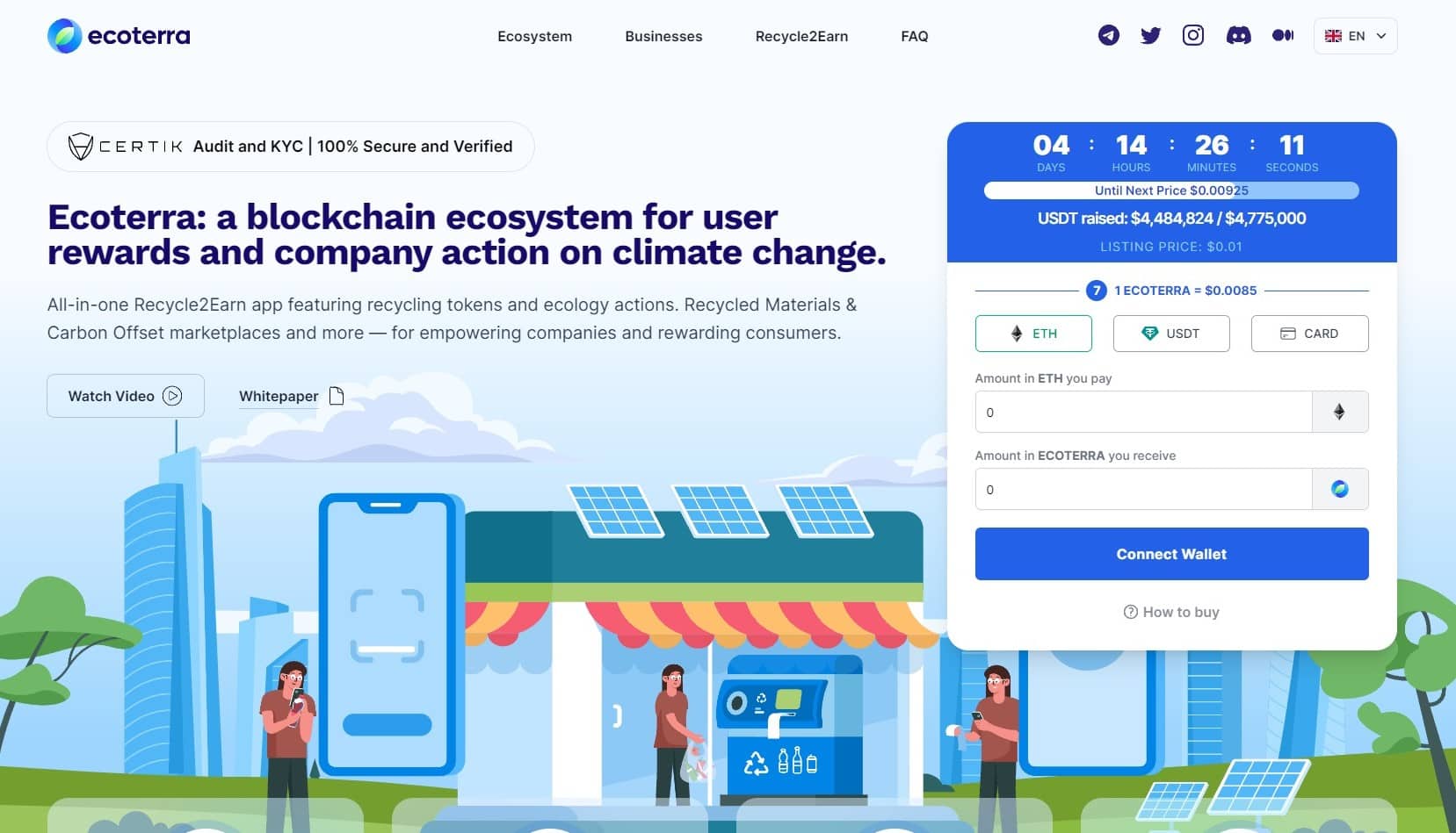 nel momento in cui scriviamo, il token nativo di Ecoterra, ECOTERRA, ha ottenuto un notevole successo nella sua fase di prevendita accumulando 4.484.824 milioni di dollari di finanziamenti.