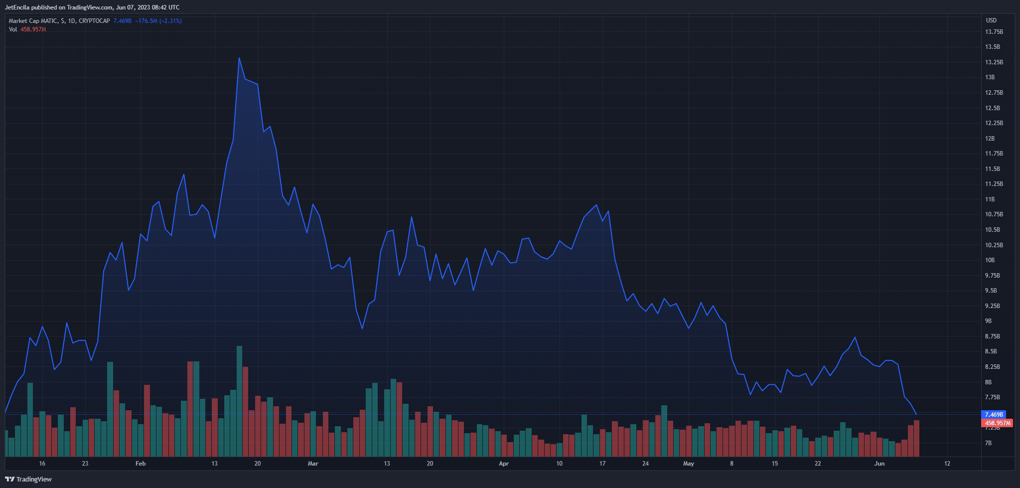 L’impennata delle transazioni di grandi dimensioni su Polygon si verifica sullo sfondo di una più ampia flessione del mercato delle criptovalute. In seguito alle azioni della SEC contro i principali exchange di criptovalute, la maggior parte delle criptovalute ha subito un calo.