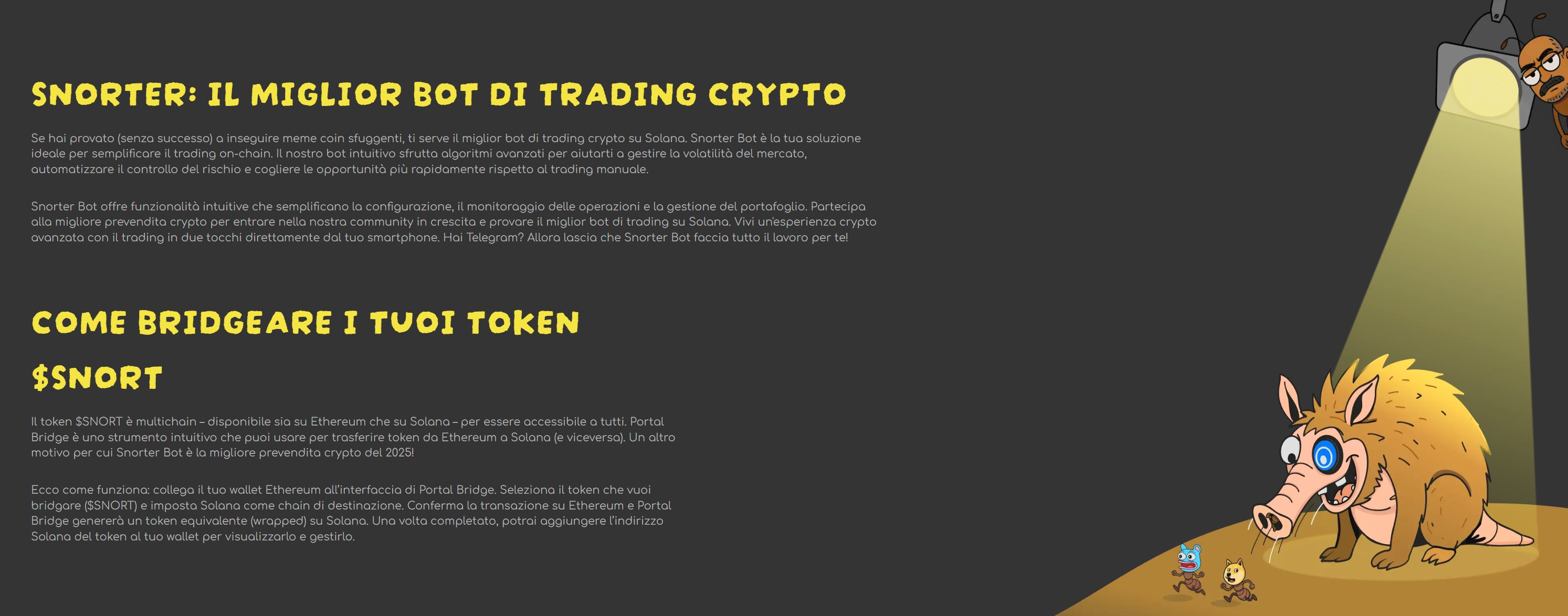 Questo significa che Snorter è in fase di sviluppo come bot di trading per tutte le stagioni e come bot per tutte le criptovalute con copertura su più catene. Che il prossimo grande rally emerga su Solana, Binance o Ethereum, i sistemi di rilevamento ed esecuzione di Snorter sono progettati per tracciarlo.