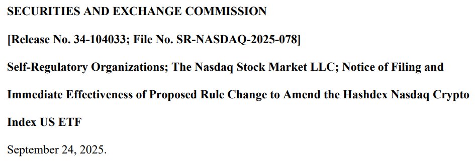 Come riportato in un post pubblicato su X da Nate Geraci, la SEC statunitense ha dato il via libera ai piani di Hashdex di espandere il proprio wallet di ETF crittografici. L’approvazione consente all’asset manager di allineare i propri prodotti ETF quotati negli Stati Uniti alla composizione completa dell’indice Nasdaq Crypto.