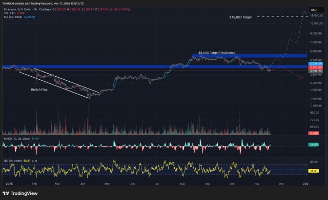 I modelli dell’IA di Alibaba prevedono che ETH possa accelerare verso i 15.000 dollari entro la fine dell’anno, con un balzo atteso del 373% rispetto al prezzo attuale vicino a 3.173 dollari.