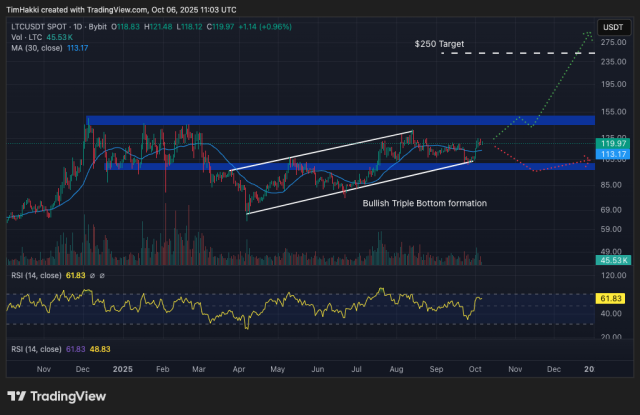 Al momento si aggira intorno ai 120 dollari, con supporti solidi a 100-140 dollari. ChatGPT prevede che LTC potrebbe raddoppiare il suo valore entro Natale 2025, superando i 200-250 dollari grazie alla fiducia di operatori e piattaforme di pagamento che ne riconoscono l’importanza.