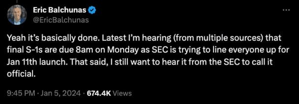 L’analista ETF di Bloomberg, Eric Balchunas, prevede che la maggior parte dei richiedenti che soddisfano i requisiti della SEC saranno approvati già questa settimana.