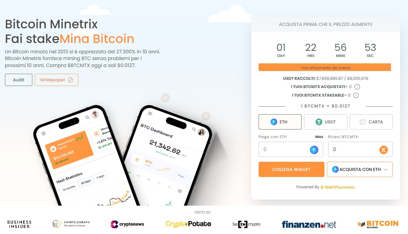 Una di queste è BTCMTX, la criptovaluta nativa del progetto Bitcoin Minetrix, il quale si sta preparando all’imminente lancio sugli exchange non appena la sua prevendita di grande successo sarà conclusa.