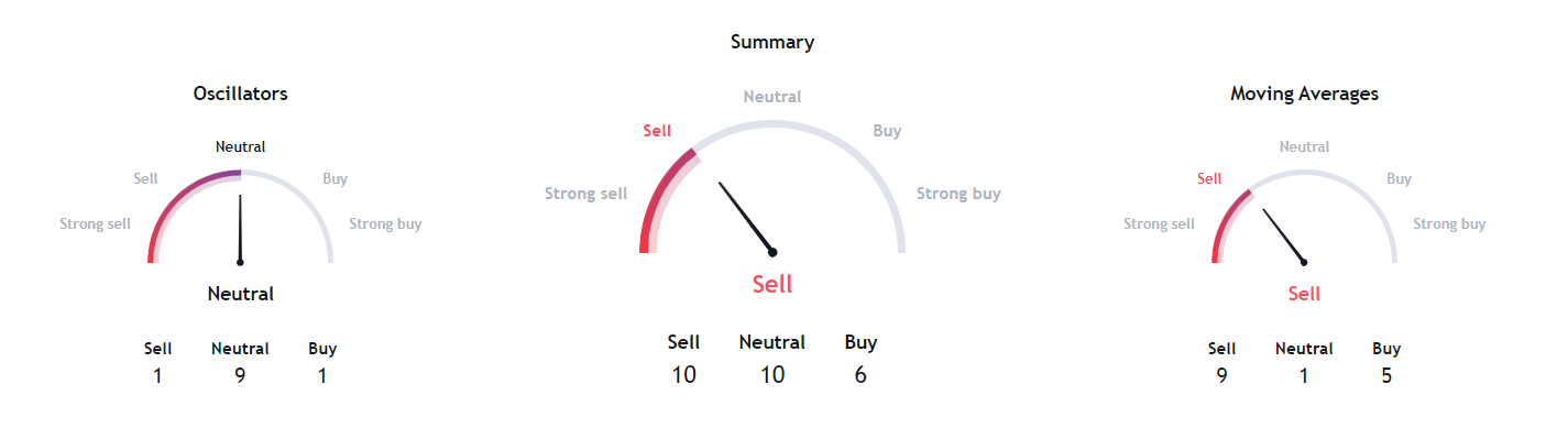 Nelle 24 ore, le medie mobili suggeriscono di vendere, mentre gli oscillatori propendono per la neutralità. Se si estende l’orizzonte temporale a una settimana, la tendenza si inverte e le medie mobili indicano un segnale di acquisto, mentre gli oscillatori rimangono neutrali.