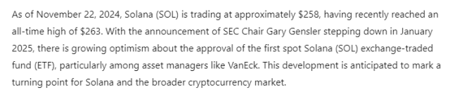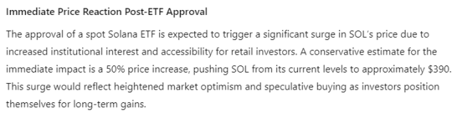 Abbiamo chiesto all’intelligenza artificiale di ChatGPT-4o una previsione sul prezzo di SOL in caso di approvazione di un ETF per Solana in un momento dominato da un ottimismo dilagante.