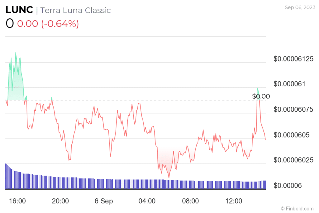 Al momento della stesura dell’articolo, Terra Classic era scambiata a 0,0000605 dollari con perdite giornaliere di circa lo 0,6%. Negli ultimi sette giorni, il token è sceso di oltre il 5%.