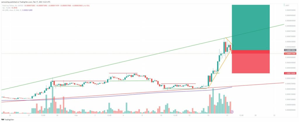 Al momento la struttura del grafico mostra un ritracciamento del -15% in 48 ore dal top del rally locale a $0,000068. FLOKI non raggiungeva tali livelli da quasi un anno ormai. In effetti, $0,00007 sarà un’area di resistenza familiare per i detentori a lungo termine.