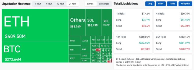 Il contributo di Ethereum alle liquidazioni complessive nelle ultime 24 ore è stato enorme: 409 milioni di dollari. Bitcoin (BTC) segue al secondo posto con 272 milioni di dollari di liquidazioni long.