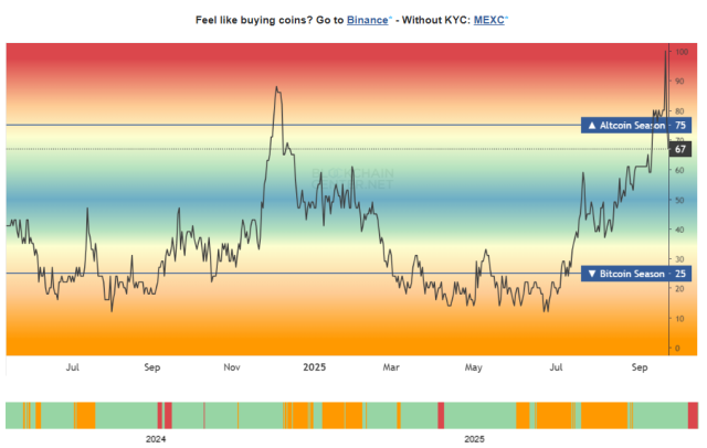 Altcoin Season Index: da 100 a 67 in un battito di ciglia