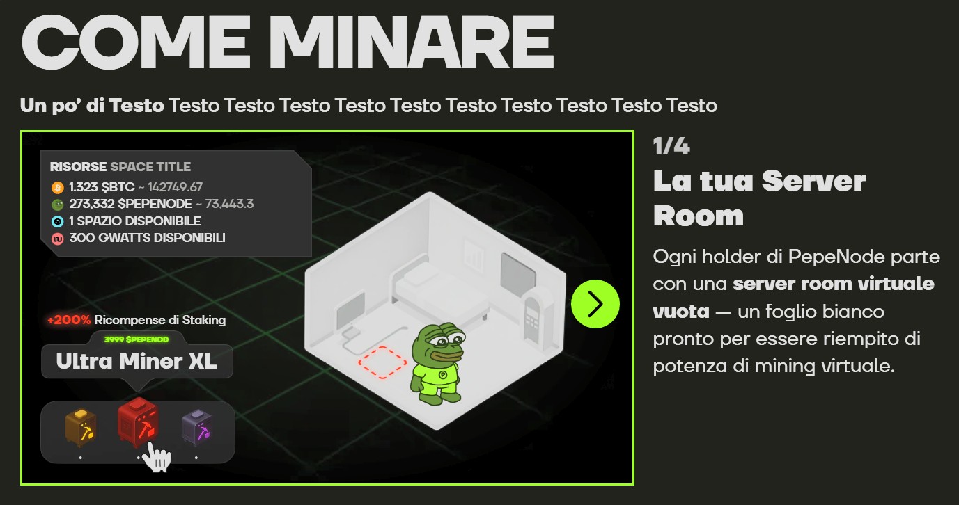 La differenza fondamentale è che PepeNode non garantisce rendimenti. Il mining è invece gamificato, offrendo ai giocatori il controllo completo attraverso una dashboard dove possono gestire e ottimizzare le loro operazioni virtuali.