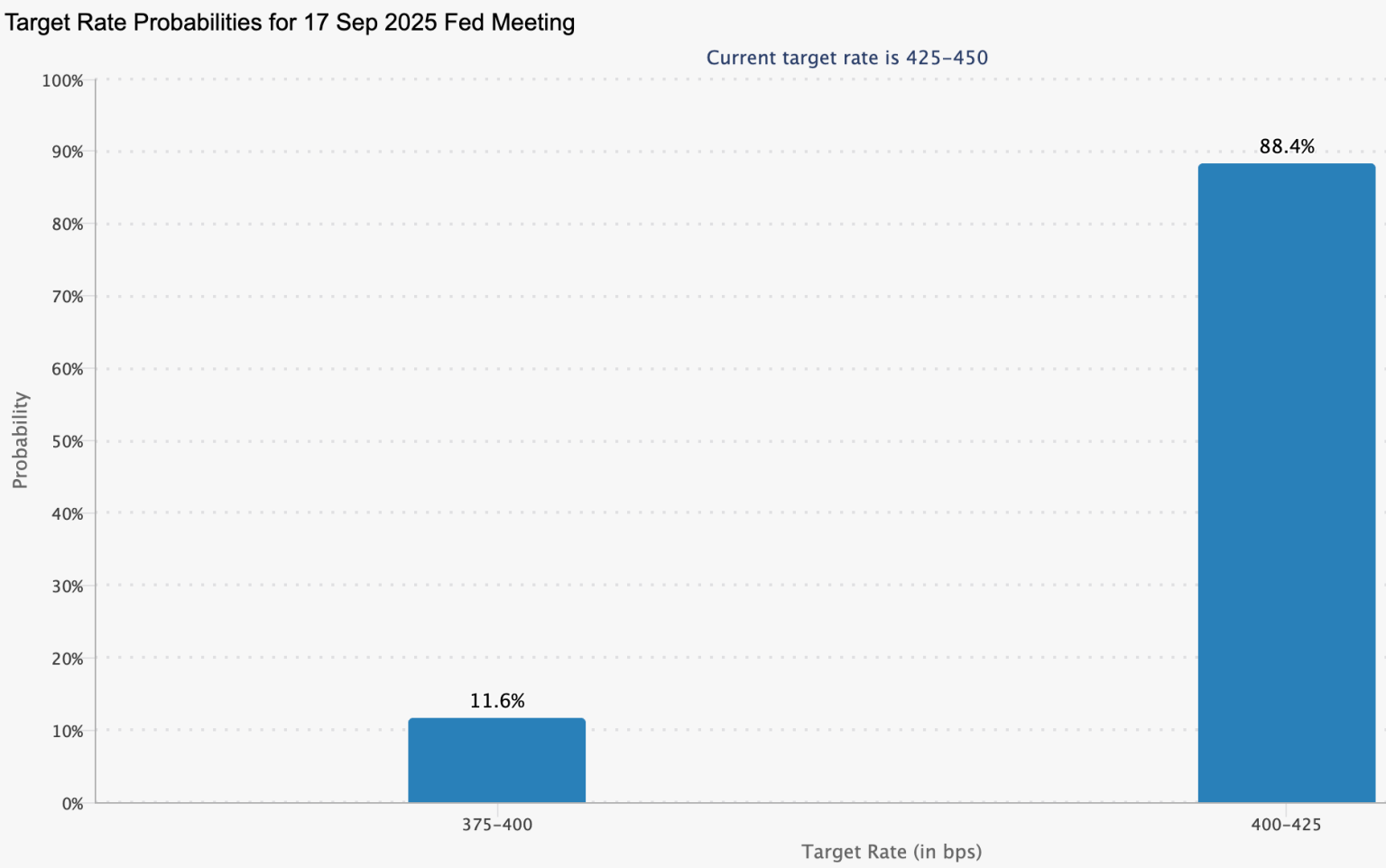 I fattori rialzisti, come il taglio dei tassi di interesse da parte della Federal Reserve (Fed) statunitense, potrebbero favorire gli asset rischiosi, comprese le criptovalute. Le ultime stime di FedWatch Tool danno un’88,4% di probabilità che la Fed tagli i tassi di interesse di 25 punti base alla fine di questo mese.