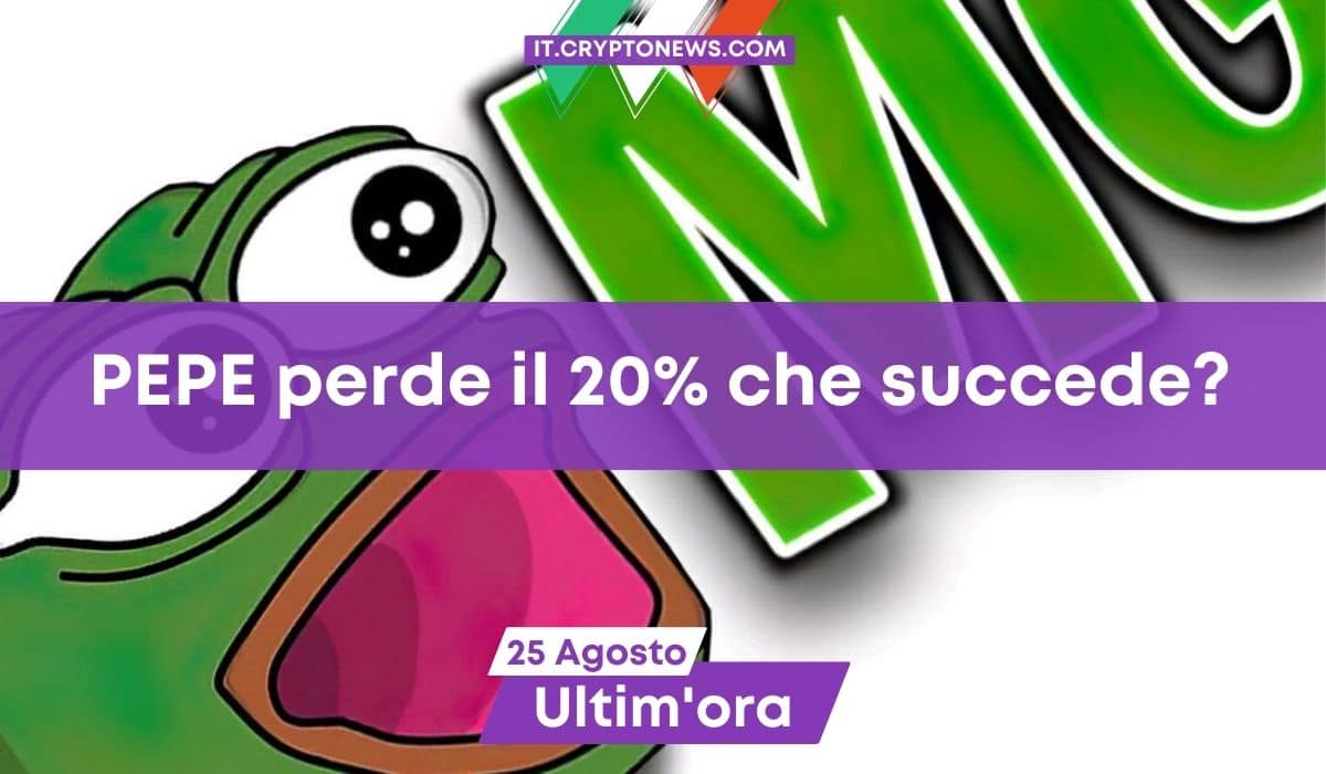 Sono ore drammatiche per Pepe Coin ($PEPE), la terza moneta meme per capitalizzazione nel mercato delle criptovalute, crollata del 20% nelle ultime ore. L’asset crittografico tra i più performanti nell’anno in corso ha subito una brusca flessione a causa di un’ondata di paura, incertezza e dubbio (FUD) innescata dai social media.