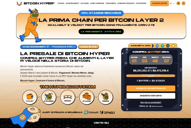 L’attenzione del mercato è rivolta anche ai progetti emergenti, come Bitcoin Hyper. Il progetto sta sviluppando un nuovo Layer 2 su Bitcoin costruito sulla Solana Virtual Machine, che offre transazioni veloci e costi bassi rispetto alla mainnet.