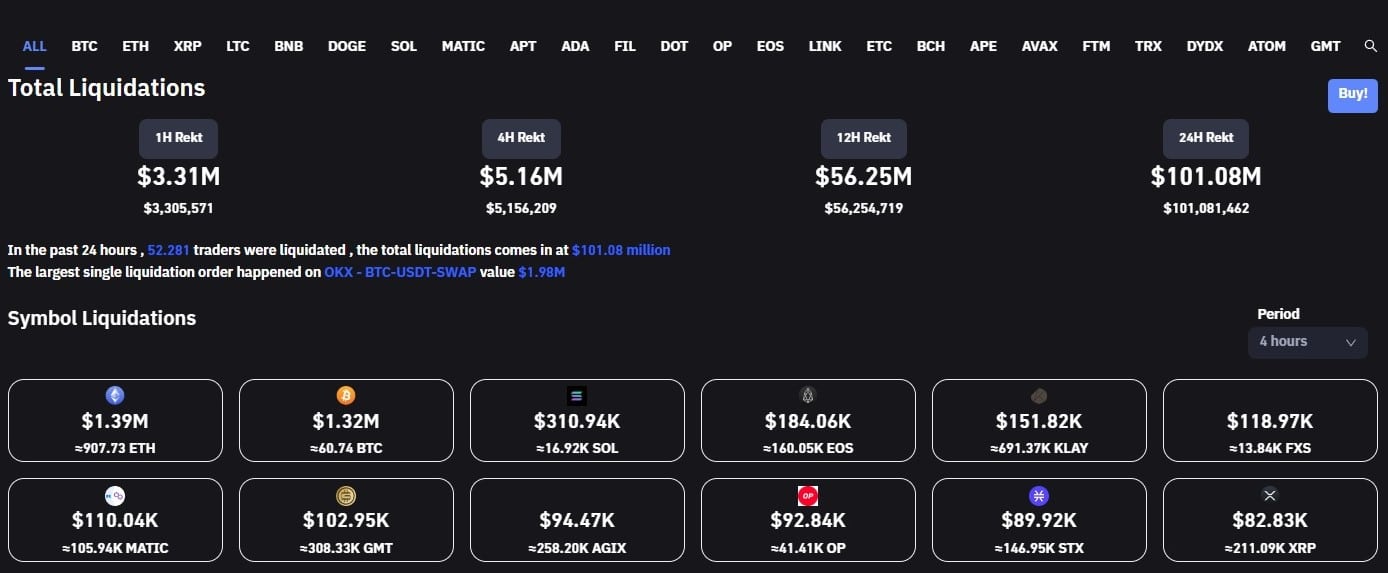 Nel frattempo, il calo dei prezzi ha causato oltre 100 milioni di dollari di liquidazioni nelle ultime 24 ore, come mostrano i dati dello strumento di analisi Coinglass. Poco più dell’85% di queste liquidazioni sono state effettuate su posizioni “short”, ovvero da traders che scommettevano sul calo dei prezzi. Oltre 70 milioni di dollari di queste cifre si sono verificati solo sui futures di bitcoin ed ether.