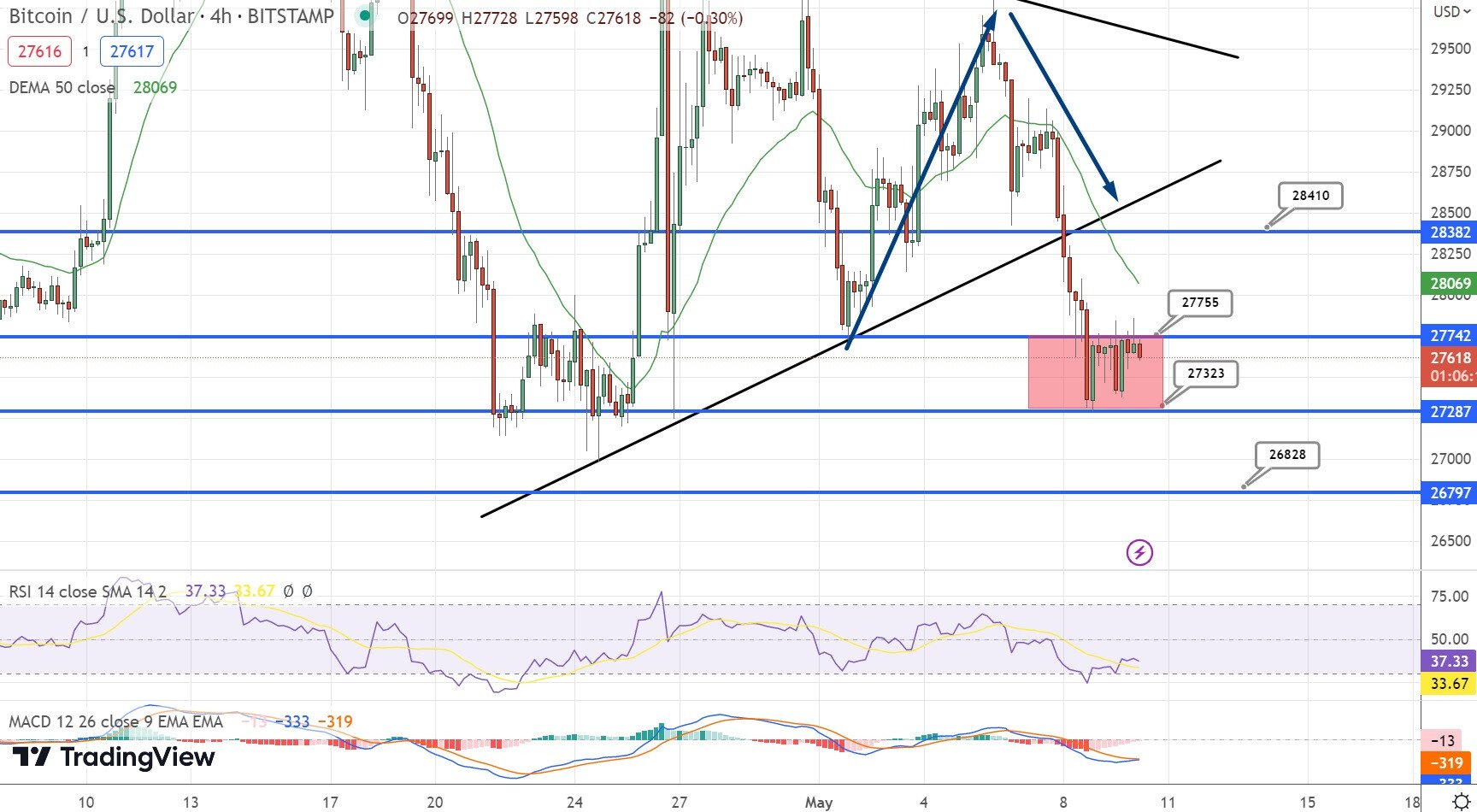 Tuttavia, il trading range di Bitcoin rimane compreso tra 27.250 e 27.700 dollari; ma non è ancora detta l’ultima parola.