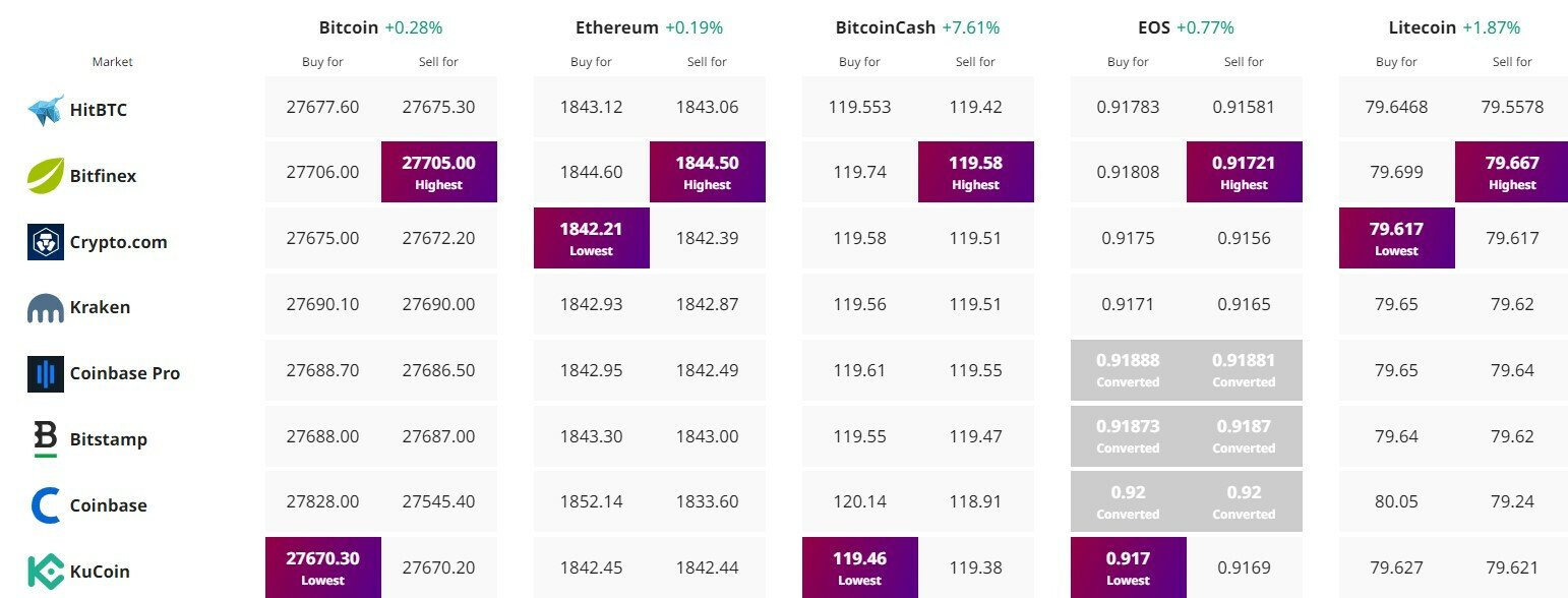 Trova il prezzo migliore per acquistare/vendere criptovalute