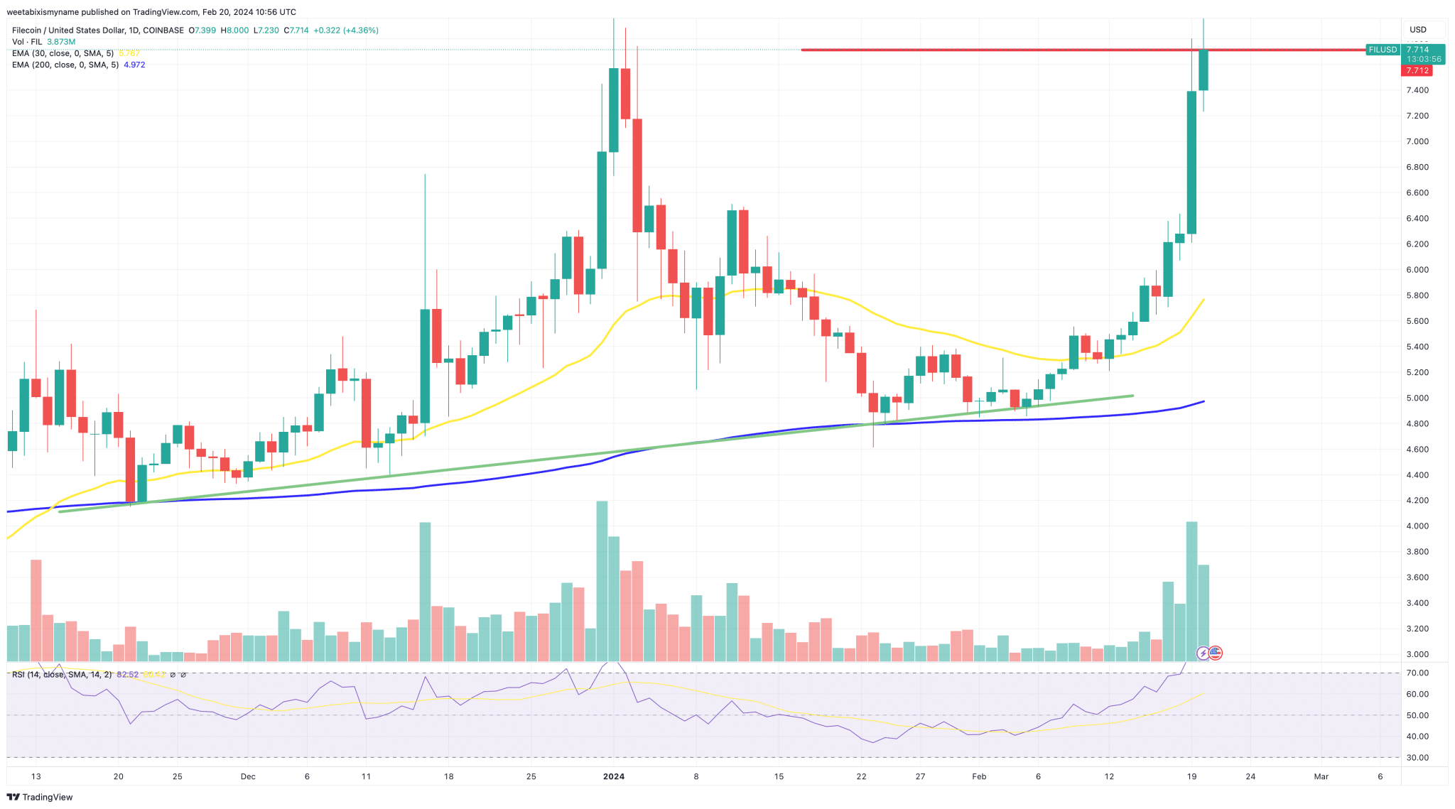 Questa notizia ha fornito il catalizzatore a breve termine per una ripresa a lungo attesa del prezzo di FIL, che in realtà rimane in calo del 96% rispetto al suo massimo storico di 236 dollari, stabilito nell’aprile 2021.