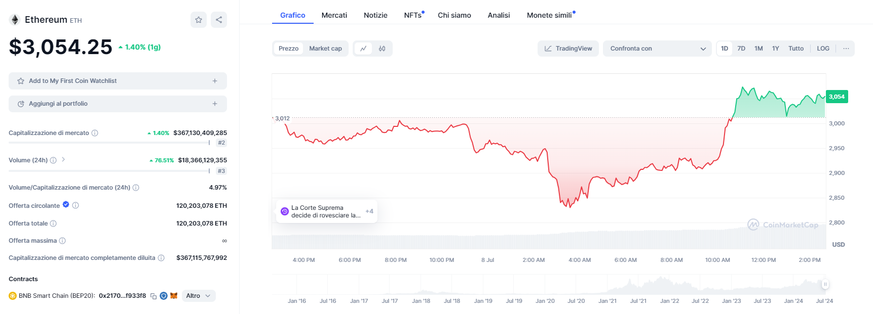 La comunità crypto attende inoltre con impazienza il lancio di un ETF spot su Ethereum, il cui inizio delle negoziazioni è previsto per il 15 luglio.