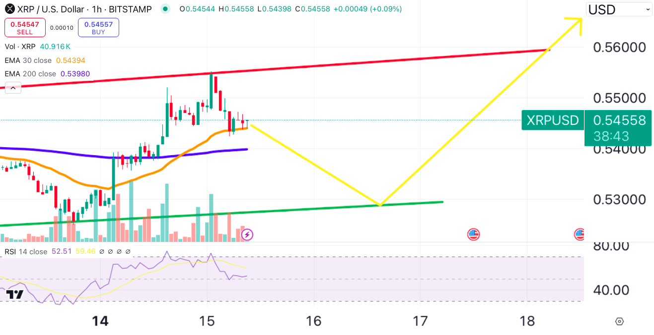 La prossima resistenza che XRP dovrà superare si trova intorno a 0,567 dollari. Un breakout al di sopra di questo livello potrebbe portare a ulteriori guadagni.