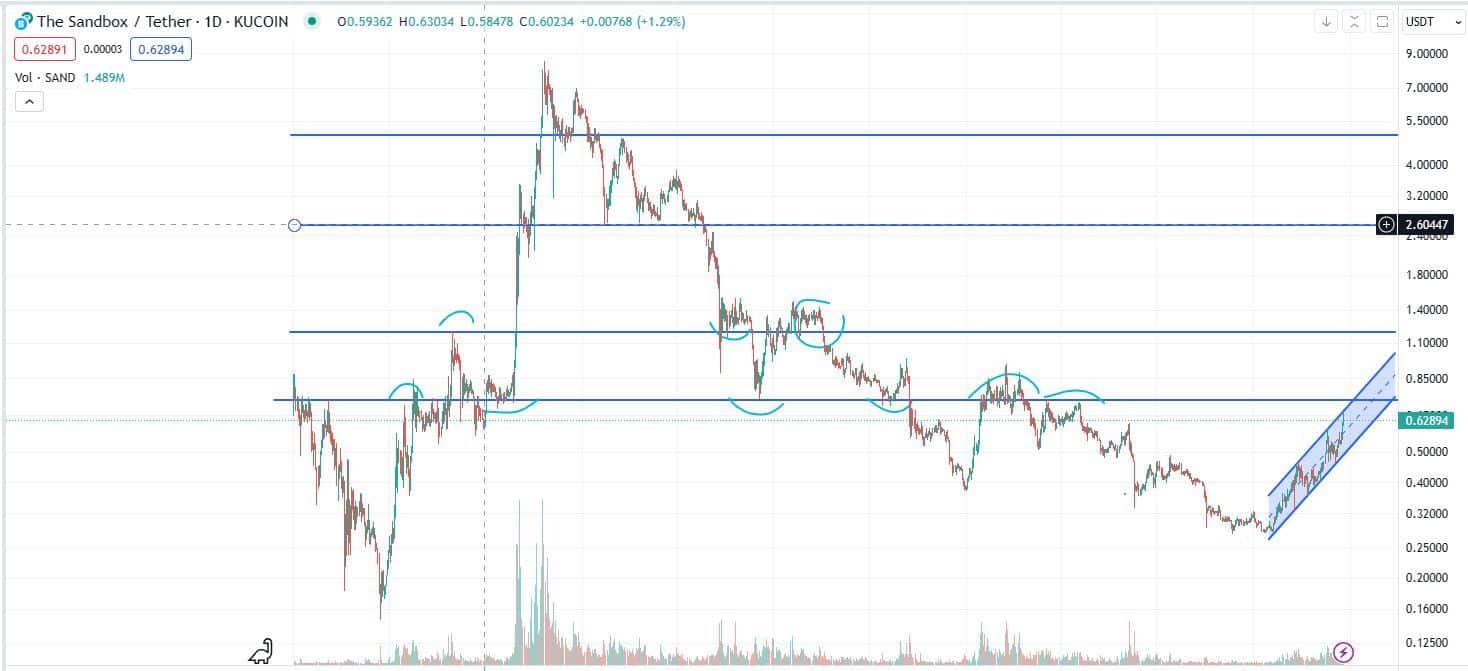 Superata l’area di 0,7$ o 0,8$, la prossima tappa di SAND sarebbe verso 1$ o 1,2$, che ha rappresentato un obiettivo importante durante il mercato orso.