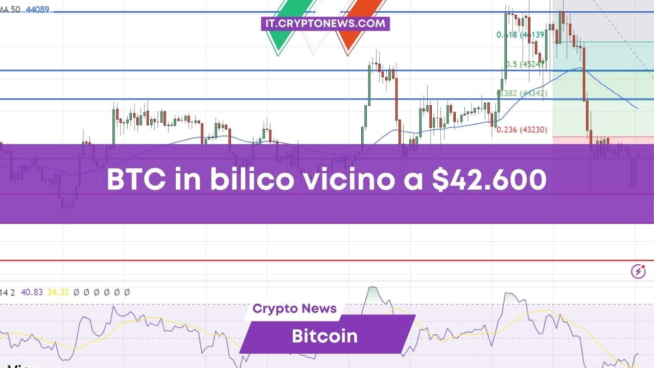 Bitcoin ha iniziato la settimana con un movimento al rialzo del 2,22% fino ad arrivare al livello attuale di 42.663 dollari. Osservando i livelli tecnici sembra che sia in atto una battaglia tra rialzisti e ribassisti.