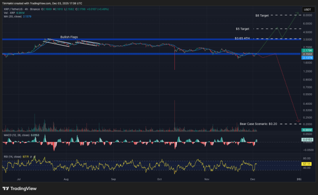 In uno scenario più rialzista, DeepSeek AI ritiene che XRP possa salire verso 8 dollari a dicembre. La recente approvazione di nove ETF spot su XRP negli Stati Uniti potrebbe attirare nuovo capitale istituzionale durante il periodo festivo, simile all’iniziale aumento visto con il debutto degli ETF spot su Bitcoin ed Ethereum. Sono probabili ulteriori approvazioni di ETF.