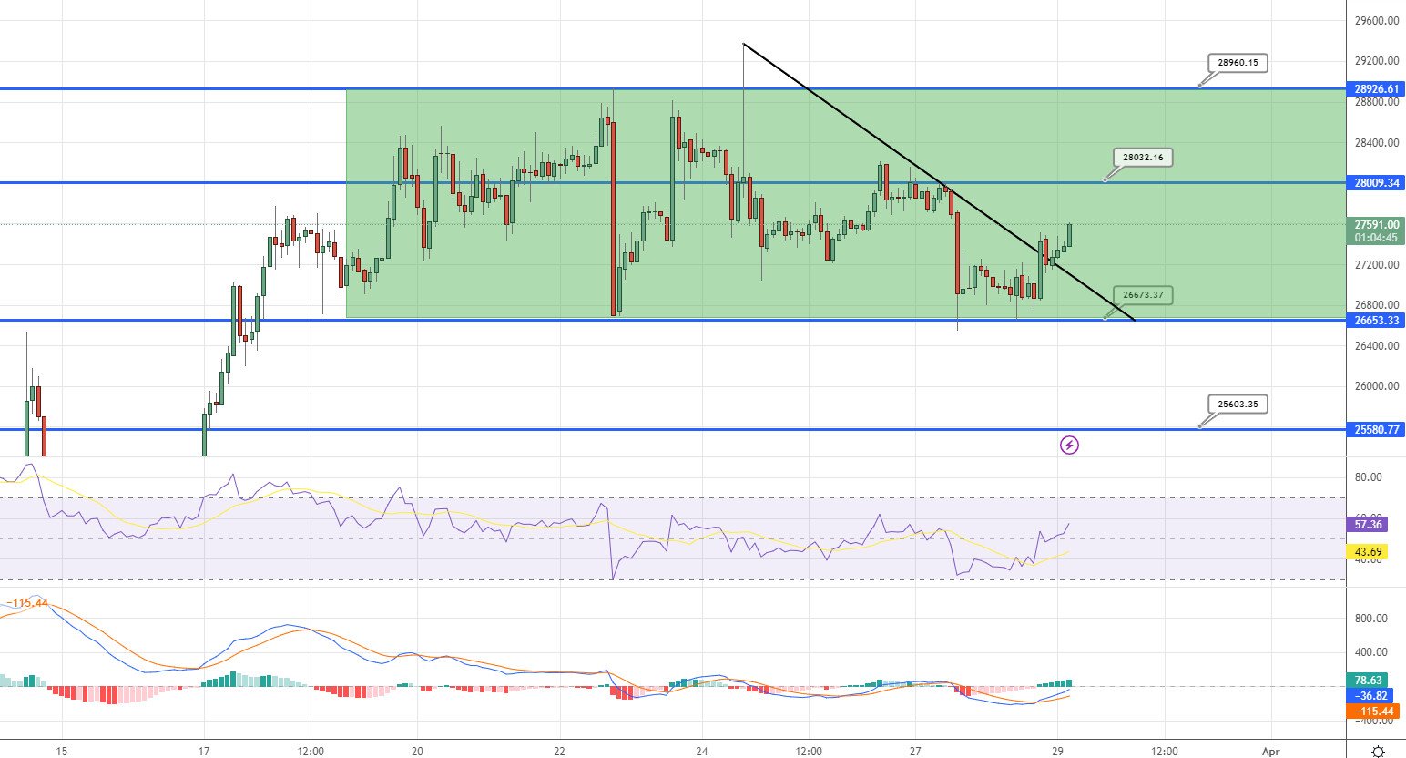 Al rialzo, è probabile che Bitcoin affronti una resistenza immediata al livello di 29.000 dollari e un ulteriore breakout al rialzo di questo particolare livello può potenzialmente portare il prezzo del Bitcoin verso il prossimo livello di resistenza di 29.900 dollari.